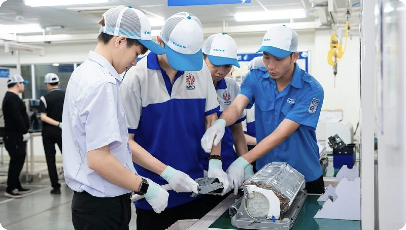 Daikin xây dựng kế hoạch đào tạo bài bản, giúp đội ngũ kỹ sư và kỹ thuật viên không ngừng phát triển năng lực, đáp ứng tiêu chuẩn toàn cầu.