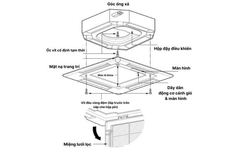 Các bộ phận trong dàn lạnh của máy lạnh âm trần cassette