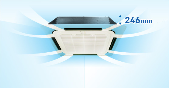 Lưu lượng gió cao: Motor quạt tốc độ cao được trang bị cho dàn lạnh. Thiết kế mỏng: Chiều cao thấp chỉ 246mm phù hợp với trần thấp giúp tiết kiệm diện tích.